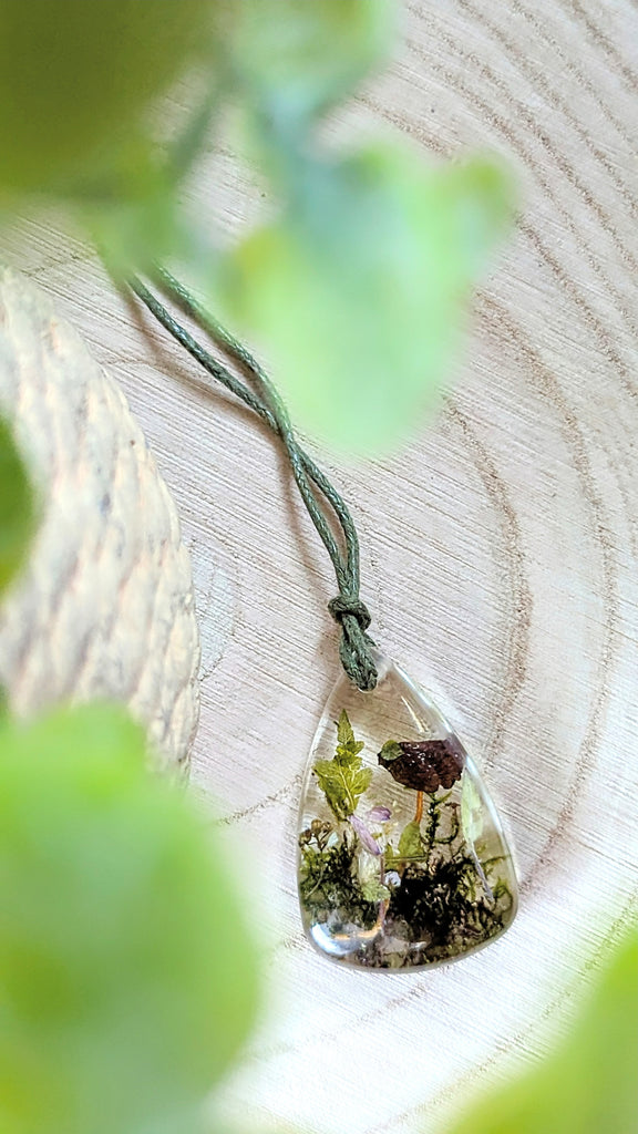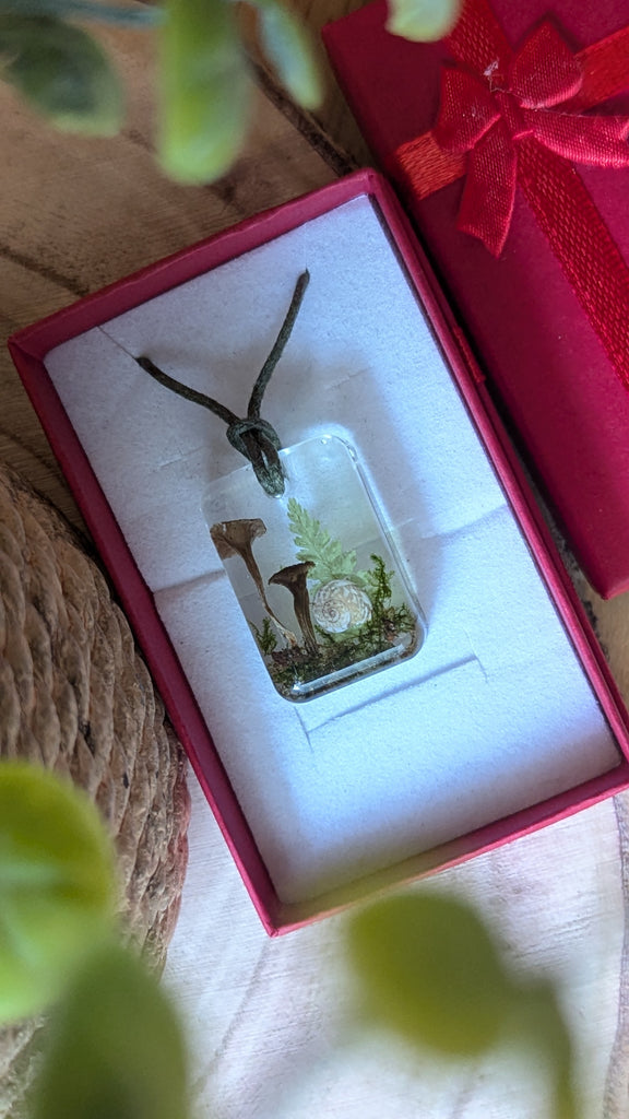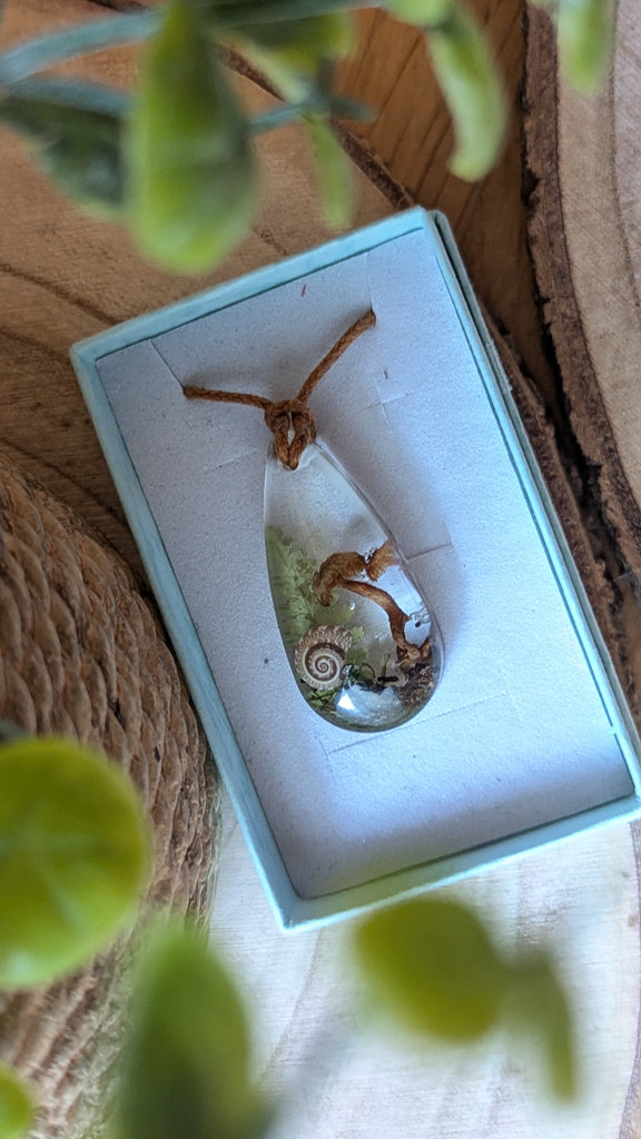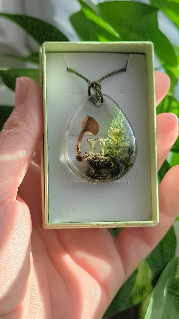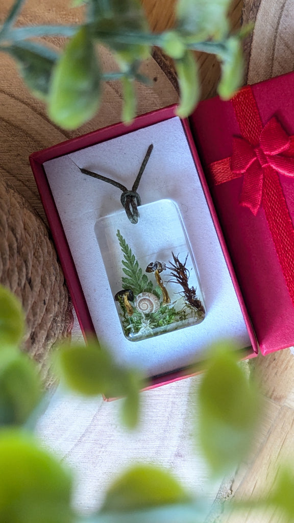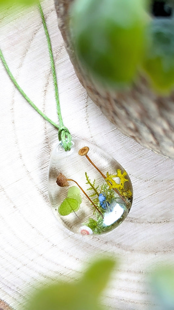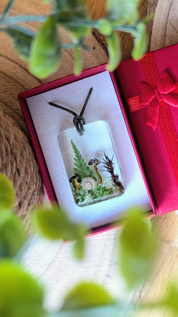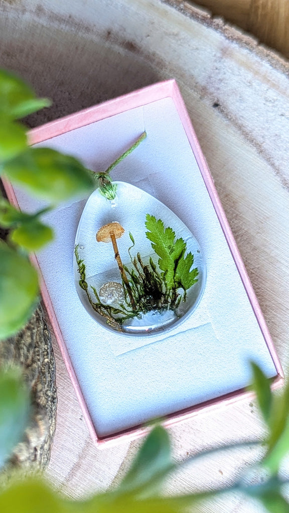 Čudoviti obeski na vrvici, ki v sebi nosijo košček gozda. Vse od praproti, mahu pa do lišajev in mini polžjih hišic pa še bi se našlo kaj :)