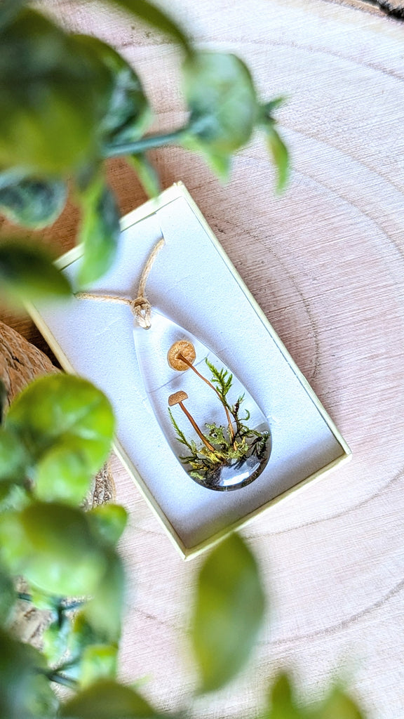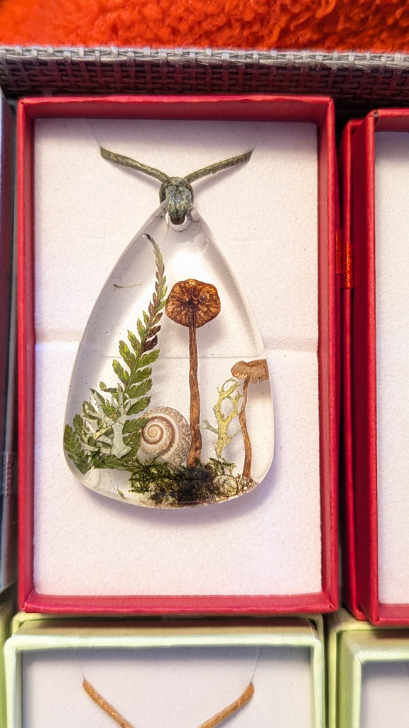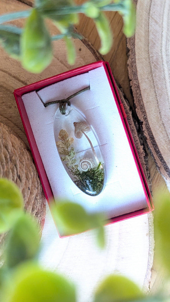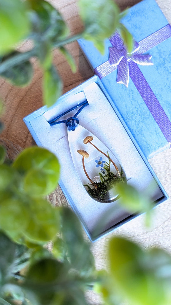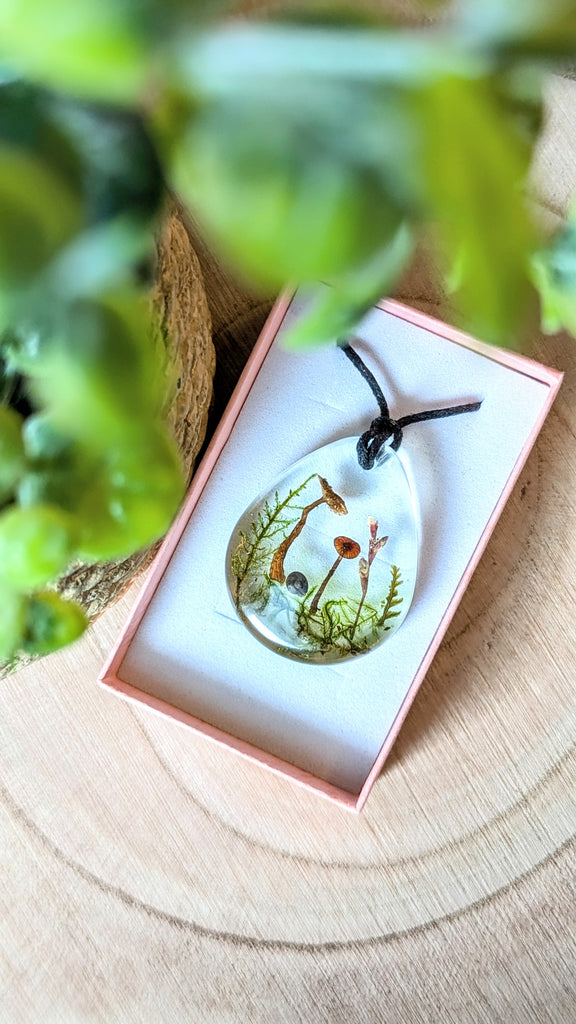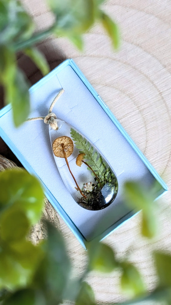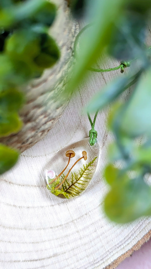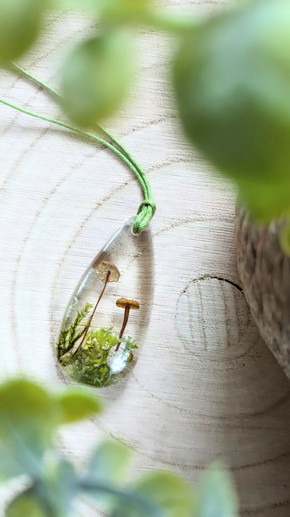 Čudoviti obeski na vrvici, ki v sebi nosijo košček gozda. Vse od praproti, mahu pa do lišajev in mini polžjih hišic pa še bi se našlo kaj :)
