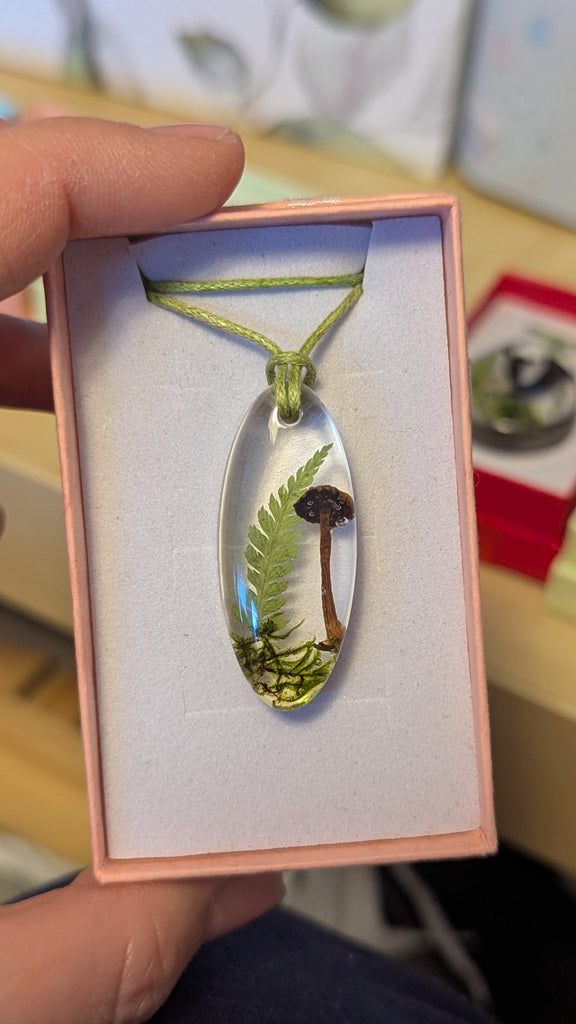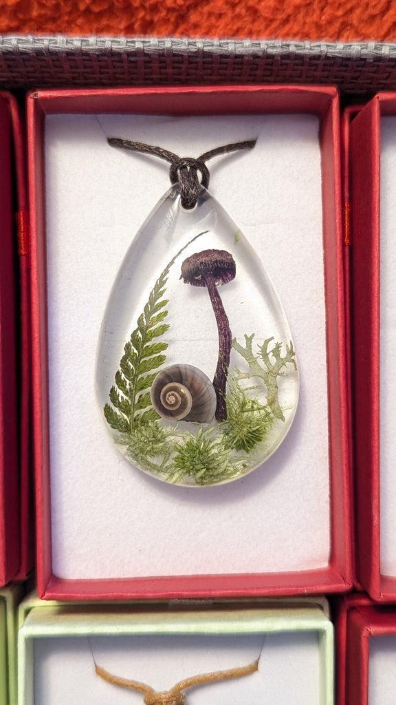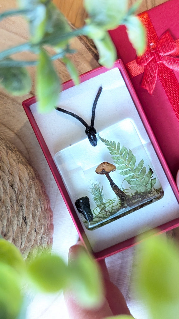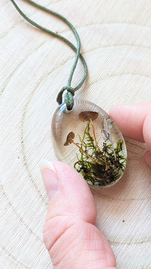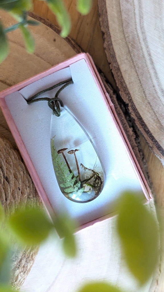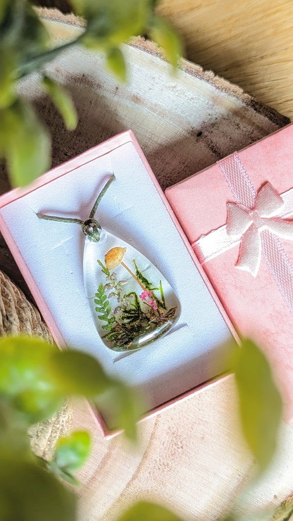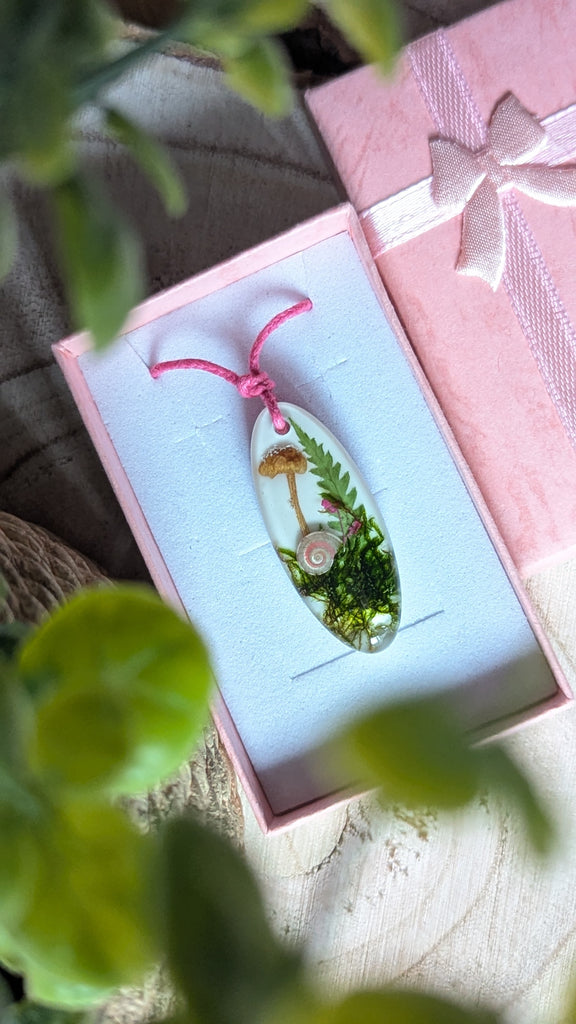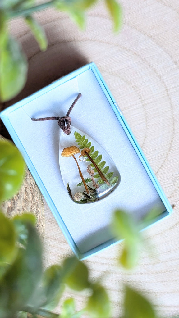 Čudoviti obeski na vrvici, ki v sebi nosijo košček gozda. Vse od praproti, mahu pa do lišajev in mini polžjih hišic pa še bi se našlo kaj :)