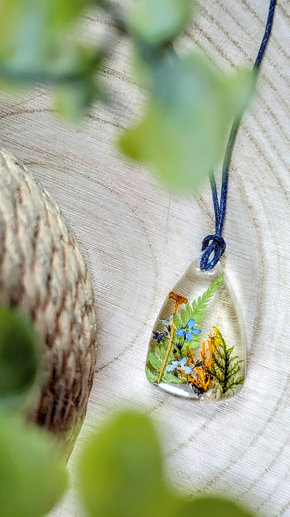 Vsak kos nakita je izdelan ročno ter vlit v epoksidno smolo v več fazah, prav tako pa je brušen in poliran ročno, kar naredi vsak kos nakita prav poseben, edinstven unikat, narejen z ljubeznijo, prav za vas ❤.